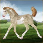 Name: 42525431Age: 4 Mare Color: Palomino Pearl Tobiano Sabino Breed: Thoroughbred Foal Rating: S/E/E |  |