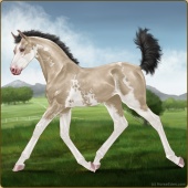 Name: Giggle Play (PPP)Age: 8 Mare Color: Buckskin Pearl Splash White Sabino Breed: Thoroughbred Foal Rating: P/P/P |  |