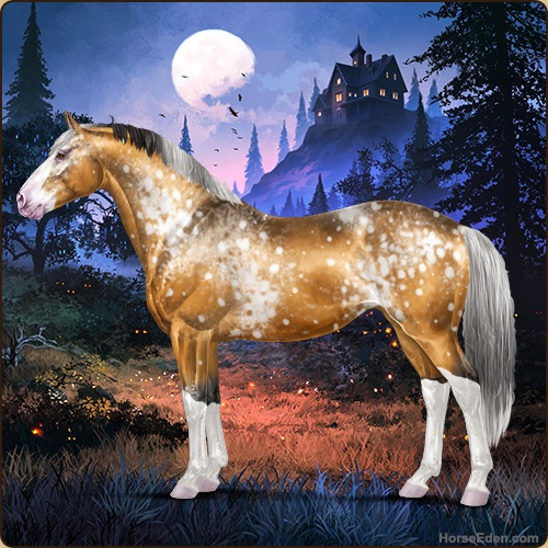 Color: Golden Bay Dun Splash White Sabino Snowflake AppaloosaHorse Nbr: 40370880Breed: Irish Sport HorseSex: MareBirthdate: March 1, 2025Age: 8Birth Year: 188Height: 16.3 Hands