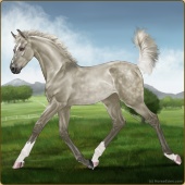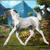 Name: ※ Sahale EEWAge: 5 Stallion Color: Silver Roan Tobiano Rabicano Breed: Irish Sport Horse Foal Rating: E/E/W Bravery Rating: Sub-Par For Breeding! |  |