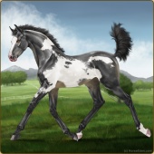 Name: Achil X 3865 193Age: 6 Mare Color: Smokey Black Pearl Splash White Sabino Breed: Irish Sport Horse Foal Rating: E/E/E |  |