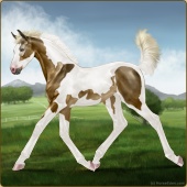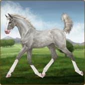 Name: OettingerAge: 3 Stallion Color: Silver Light Bay Roan Tobiano Breed: Sport Horse Foal Rating: A/P/W |  |