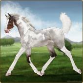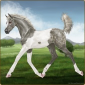 Name: 42947265Age: 2 Mare Color: Silver Roan Sabino Breed: Sport Horse Foal Rating: A/P/W |  |