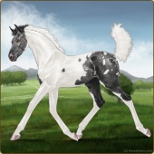 Name: foal 30601011Age: 2 Mare Color: Black Splash White Varnish Appaloosa Breed: Irish Sport Horse Foal Rating: P/P/P |  |