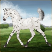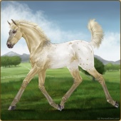 Name: Platinum Silver Gold xAge: 9 Mare Color: Perlino Roan Varnish Appaloosa Breed: Irish Sport Horse Foal Rating: E/E/E |  |