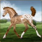 Name: Connery Bay [EPP_79]Age: 3 Stallion Color: Copper Bay Snowflake Appaloosa Breed: Knabstrupper Foal Rating: E/P/P |  |