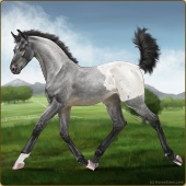 Name: HWS AramayAge: 1 Filly Color: Smokey Blue Roan Varnish Blanket Appaloosa Breed: Knabstrupper Foal Rating: W/E/E |  |