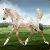 Name: Anne's Victory 190 PEEAge: 11 Mare Color: Palomino Roan Varnish Appaloosa Breed: Knabstrupper Foal Rating: P/E/E Bravery Rating: Sub-Par |  |
