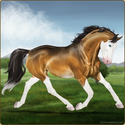 Color: Golden Bay Dun Splash White Sabino