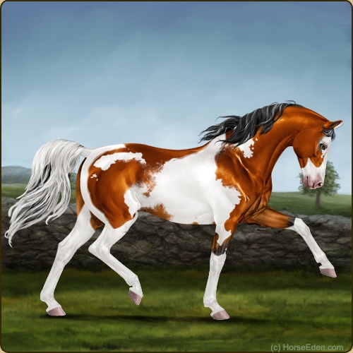 Color: Copper Bay Tobiano Splash White Sabino Frame