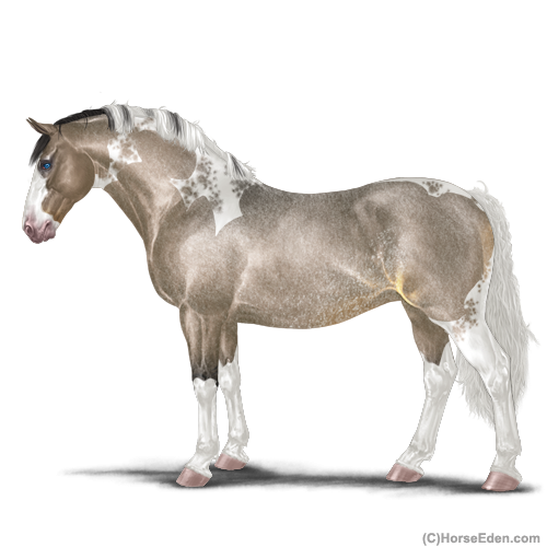 Color: Brown Dunskin Roan Tobiano Splash White Sabino Rabicano
