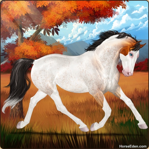 Color: Copper Bay Roan Splash White