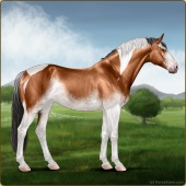Name: Is This Taboo? PEP 1\6Age: 5 Mare Color: Light Bay Roan Tobiano Splash White Blanket Appaloosa Breed: Irish Sport Horse Foal Rating: P/E/P Bravery Rating: Sub-Par |  |