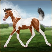 Name: MMToT X Samso 194 (ToTo)Age: 2 Mare Color: Mahogany Bay Roan Tobiano Splash White Breed: Sport Horse Foal Rating: E/E/P |  |