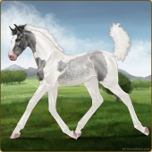 Name: TINKERING WITH PEARLSAge: 0 Mare Color: Silver Grullo Tobiano Sabino Breed: Sport Horse Foal Rating: P/E/P |  |