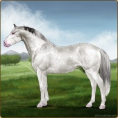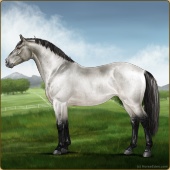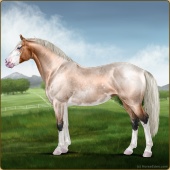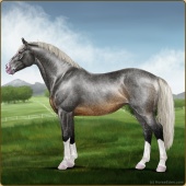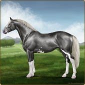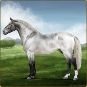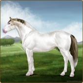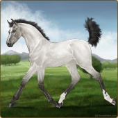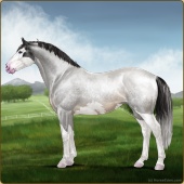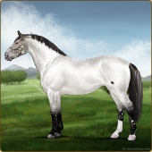 Name: 🎃 Cherebum LegionAge: 7 Mare Color: Silver Smokey Grullo Pearl Splash White Varnish Appaloosa Breed: Irish Sport Horse Foal Rating: P/E/E |  |