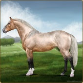 Name: Everg X Serio 195Age: 3 Gelding Color: Silver Buckskin Roan Sabino Breed: Irish Sport Horse Foal Rating: S/P/P |  |