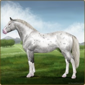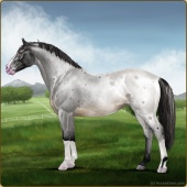 Name: 🎃 Everglade MusicAge: 6 Gelding Color: Silver Smokey Roan Sabino Varnish Blanket Appaloosa Breed: Irish Sport Horse Foal Rating: S/P/E |  |