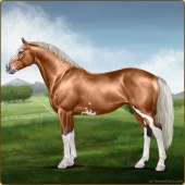 Name: 🎃 Fair CherebumAge: 7 Stallion Color: Sable Creme Tobiano Splash White Sabino Varnish Blanket Appaloosa Breed: Irish Sport Horse Foal Rating: P/P/P |  |