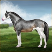 Name: 🎃 Titanic Cherebum GraAge: 6 Gelding Color: Smokey Blue Roan Splash White Breed: Irish Sport Horse Foal Rating: P/P/S |  |