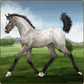Name: 🎃 Beautiful CheribumAge: 0 Stallion Color: Silver Smokey Black Sabino Breed: Irish Sport Horse Foal Rating: S/S/S Bravery Rating: Sub-Par |  |