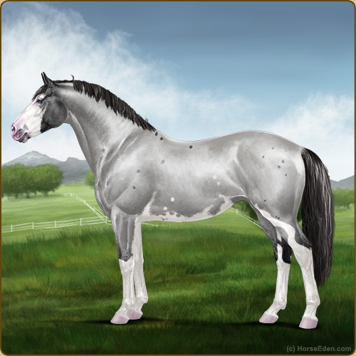 Color: Smokey Blue Roan Splash White Sabino