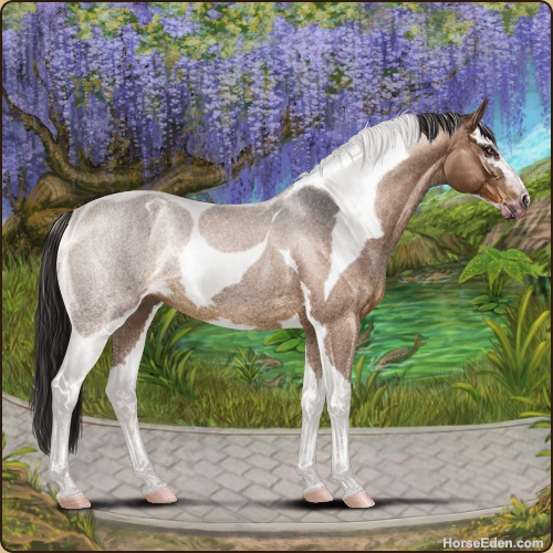 Color: Mahogany Bay Roan Dun Tobiano Sabino
