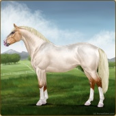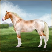 Name: All Away PEP (1/8)Age: 8 Stallion Color: Flaxen Red Roan Dun Splash White Sabino Leopard Appaloosa Breed: Irish Sport Horse Foal Rating: P/E/P |  |