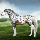 Name: Denvers Angel EWE-spAge: 7 Stallion Color: Roan Grullo Splash White Varnish Leopard Appaloosa Breed: Irish Sport Horse Foal Rating: E/W/E Bravery Rating: Sub-Par For Breeding! |  |