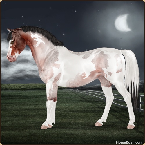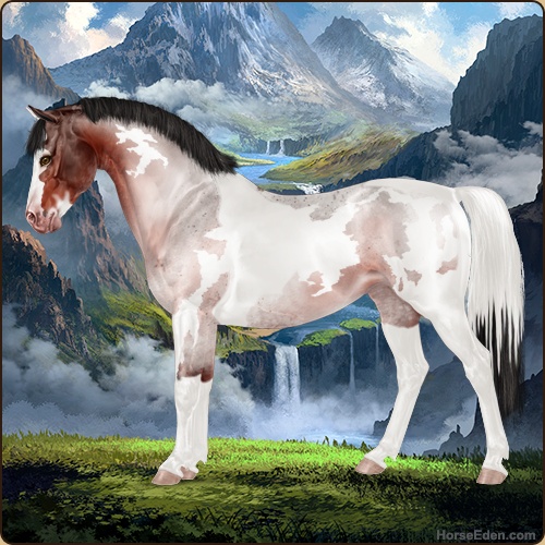 Color: Blood Bay Roan Tobiano Sabino Frame