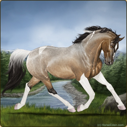 Color: Mahogany Bay Roan Dun Tobiano