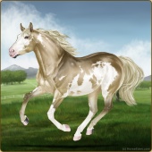 Name: Cheetah WASubAge: 8 Stallion Color: Dunalino Pearl Rabicano Frame Breed: Appendix Quarter Horse Foal Rating: W/A/Sub |  |
