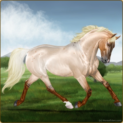 Color: Flaxen Red Roan Dun Rabicano