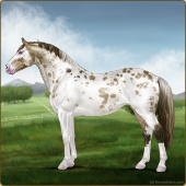 Name: foal 76900285Age: 2 Mare Color: Brown Varnish Snowflake Appaloosa Breed: Irish Sport Horse Foal Rating: W/Sub/Sub |  |