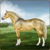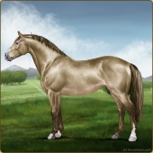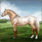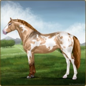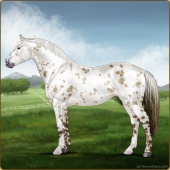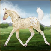 Name: foal X WRSVe 194Age: 3 Stallion Color: Gold Champagne Leopard Appaloosa Breed: Irish Sport Horse Foal Rating: W/Sub/Sub |  |