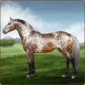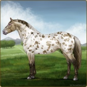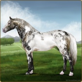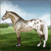 Name: foal X WRSKu 194Age: 3 Mare Color: Grey Varnish Appaloosa Breed: Irish Sport Horse Foal Rating: W/A/Sub |  |