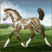 Name: foal 61383451Age: 3 Stallion Color: Brown Varnish Blanket Appaloosa Breed: Irish Sport Horse Foal Rating: W/Sub/Sub |  |