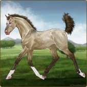 Name: foal 73642553Age: 3 Stallion Color: Gold Dun Frame Appaloosa Breed: Irish Sport Horse Foal Rating: W/Sub/Sub |  |