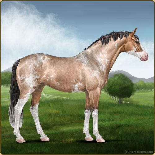 Color: Light Bay Roan Dun Splash White Sabino