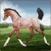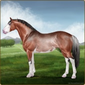 Name: Aldeb X ZzRnr 195Age: 6 Mare Color: Silver Mahogany Bay Roan Splash White Breed: Irish Sport Horse Foal Rating: E/E/E |  |