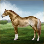 Name: Aldeb X Glorf 196Age: 5 Mare Color: Palomino Sabino Breed: Irish Sport Horse Foal Rating: E/E/E |  |