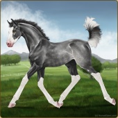 Name: Aldeb X Elroh 200Age: 1 Filly Color: Black Sabino Rabicano Breed: Irish Sport Horse Foal Rating: E/E/E |  |