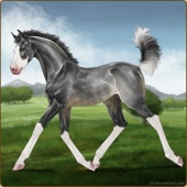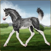 Name: Aldeb X Aldeb 200Age: 1 Filly Color: Black Splash White Rabicano Breed: Irish Sport Horse Foal Rating: E/E/E |  |