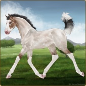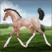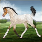 Name: ※ Tanglefoot EWEAge: 2 Stallion Color: Amber Creme Roan Dun Pearl Tobiano Splash White Sabino Breed: Irish Sport Horse Foal Rating: E/W/E |  |