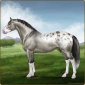 Name: SDFSt X Spray 193Age: 9 Gelding Color: Grullo Appaloosa Breed: Sport Horse Foal Rating: E/P/P |  |