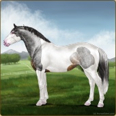 Name: SDFSt X QstTa 192Age: 10 Gelding Color: Roan Grullo Tobiano Blanket Appaloosa Breed: Irish Sport Horse Foal Rating: P/E/E |  |