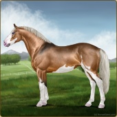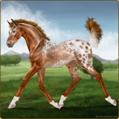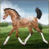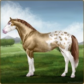 Name: Strat X 2325 200Age: 2 Mare Color: Light Bay Dun Splash White Blanket Appaloosa Breed: Irish Sport Horse Foal Rating: P/P/P |  |