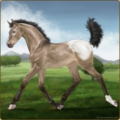Name: 42047106 DAge: 6 Gelding Color: Brown Buckskin Varnish Leopard Appaloosa Breed: Knabstrupper Foal Rating: W/Sub/Sub |  |
