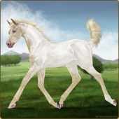 Name: Miler X Stone 199Age: 1 Gelding Color: Cremello Varnish Near Fewspot Appaloosa Breed: Knabstrupper Foal Rating: W/Sub/Sub |  |