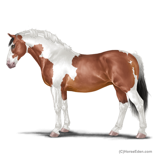 Color: Blood Bay Dun Tobiano Splash White Sabino